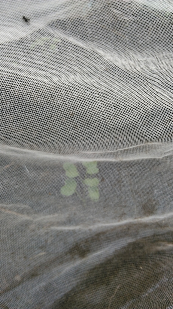 ・トウモロコシと枝豆: 寒冷紗の取り除き、防鳥紐張り